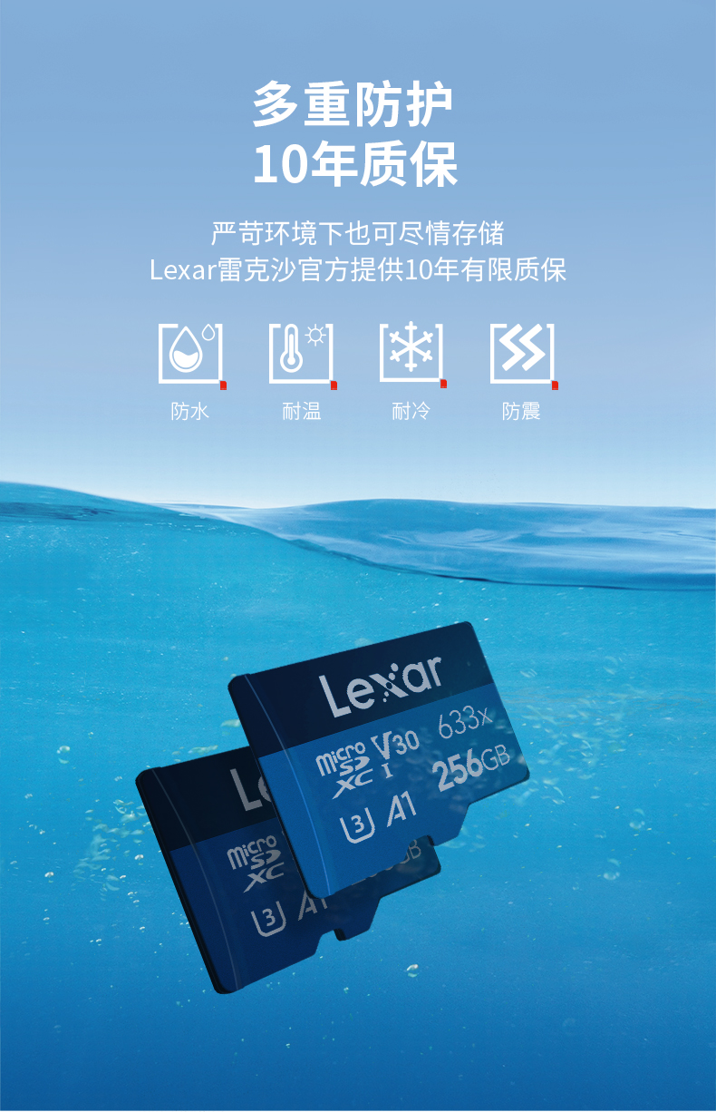 雷克沙(Lexar)256GB TF(MicroSD)存储卡 Class10 U3 A1 读100MB/s (633x)