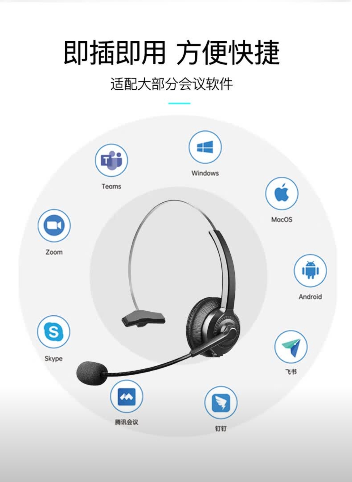 亿家通 Y300-RJ9 水晶头单耳话务耳机 头戴式耳机 单位 个