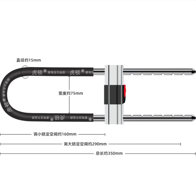 虎顿(HOTUN)A01-350 玻璃门锁加粗U型锁店铺商铺双开玻璃门锁 160-290mm
