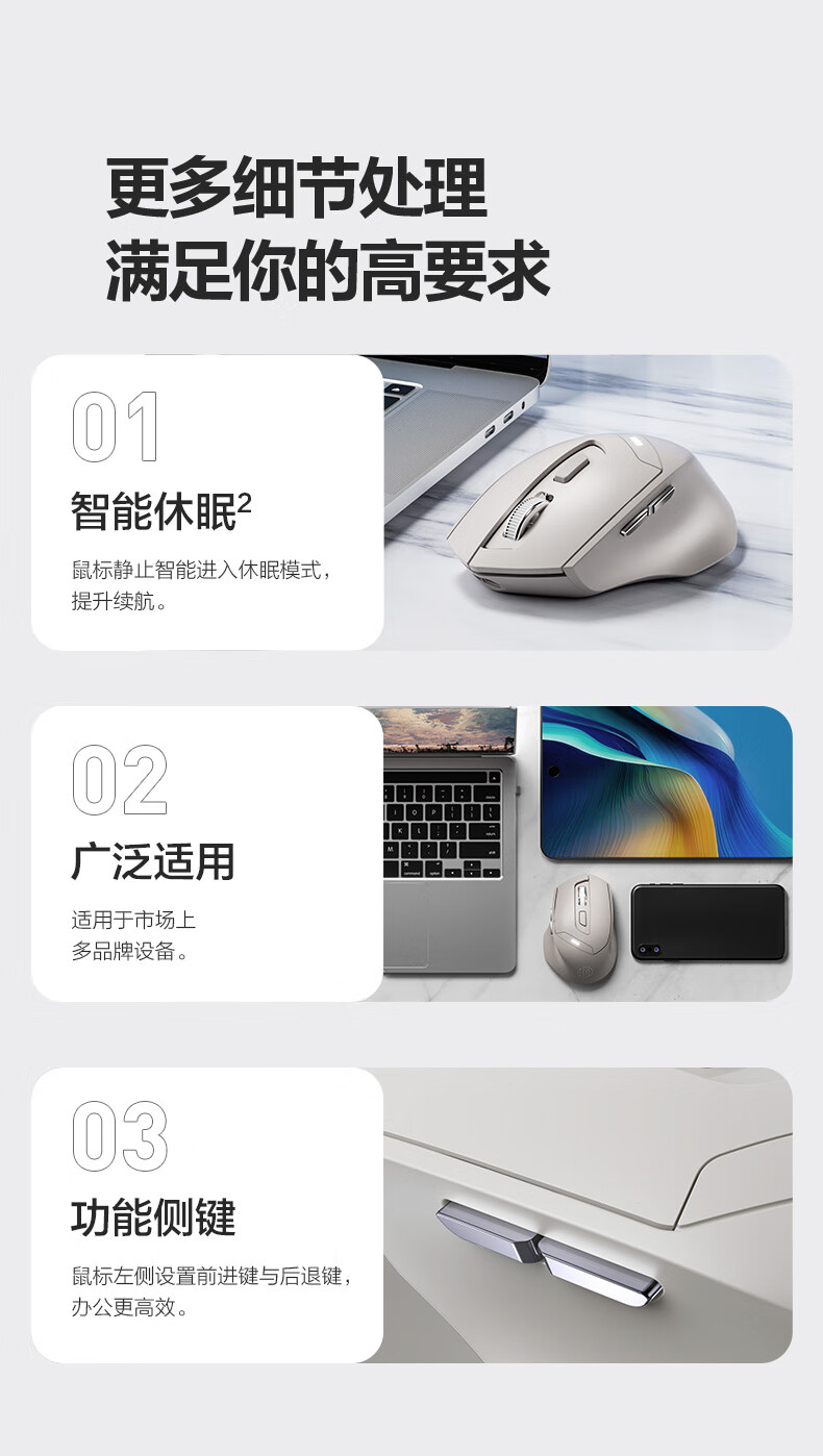 英菲克(INPHIC)DR6 无线蓝牙鼠标 可充电式人体工学三模 白杏色