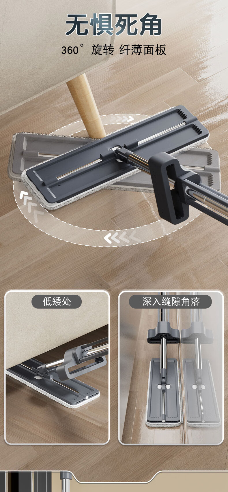 妙洁 宽40cm 平板拖把 免手洗拖地墩布 杆长137cm(1拖把+2布)
