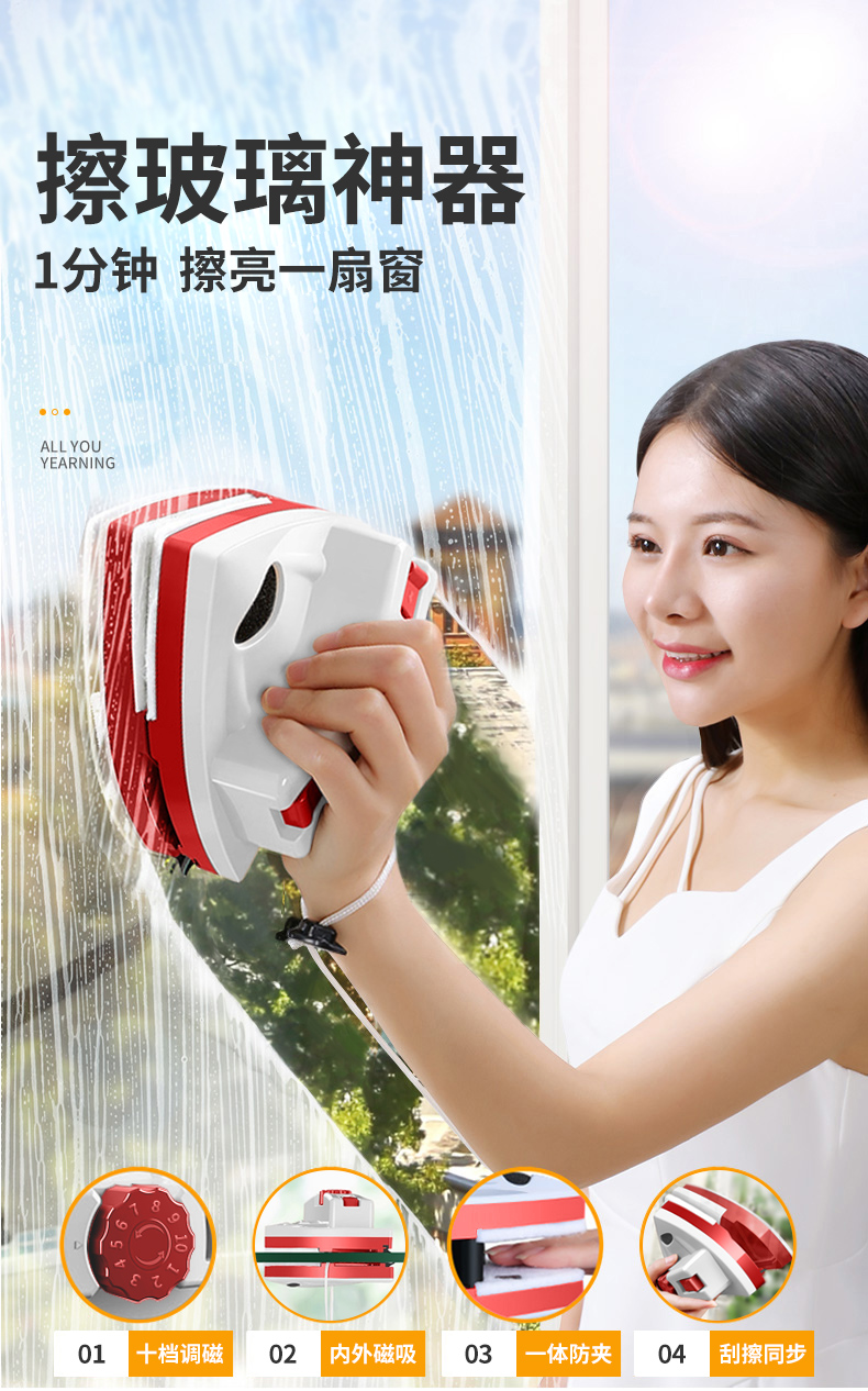 依来洁 YLJ-RT 擦玻璃神器 5-32mm 双层玻璃强磁可调磁双面擦窗器