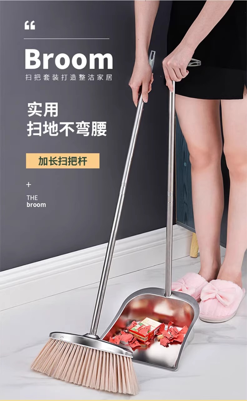 扫把簸箕组合 一体成型不锈钢扫把簸箕套装