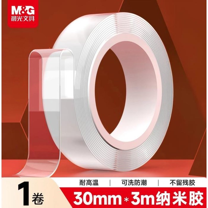 晨光 AJD957F1 30mm*3m*1mm无痕纳米双面胶带 透明防水胶 单位 卷