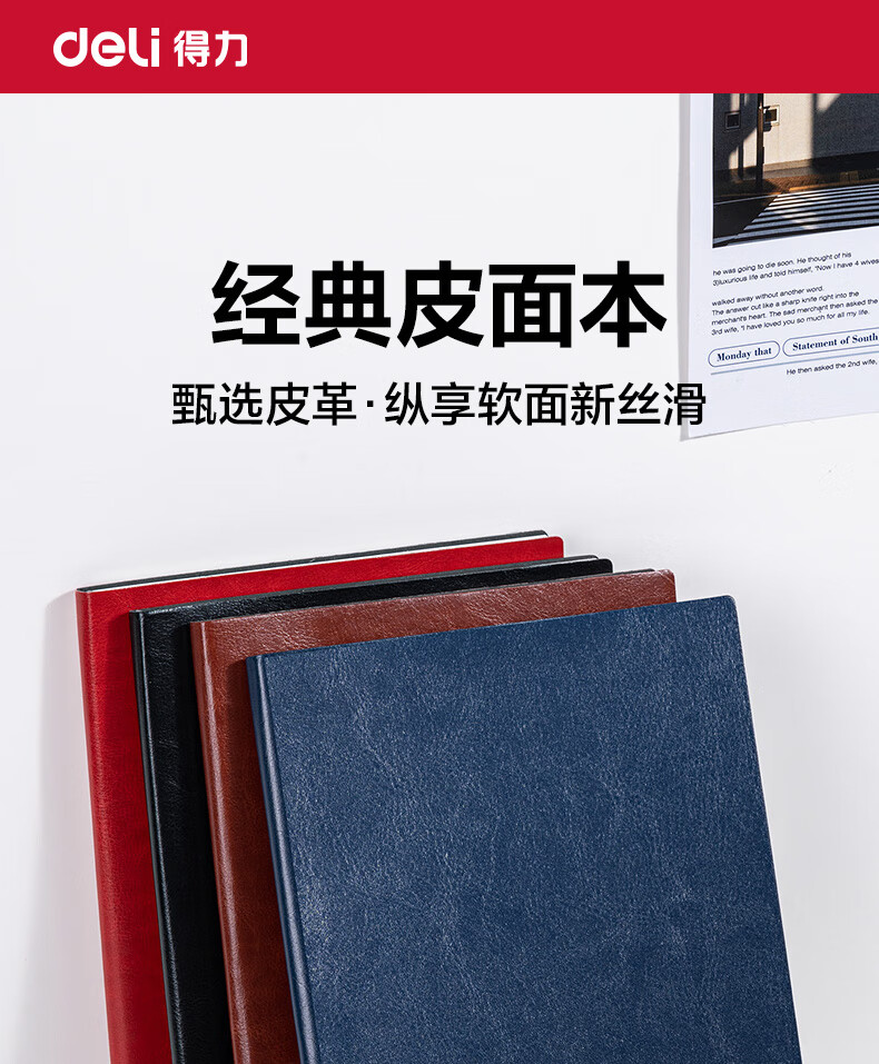 得力 6900-16 16K 皮面办公笔记本 四色可选(红、蓝、棕、黑)可定制