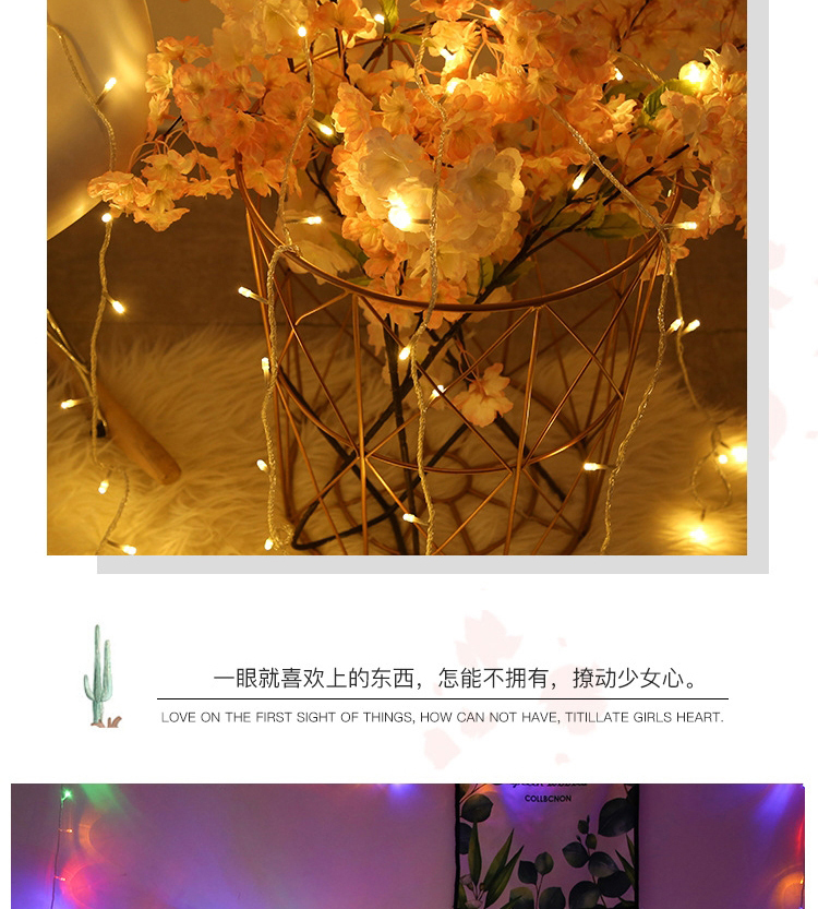 小彩灯 10米100个灯 可以串联 圆孔接口 需另配插头 单位 捆