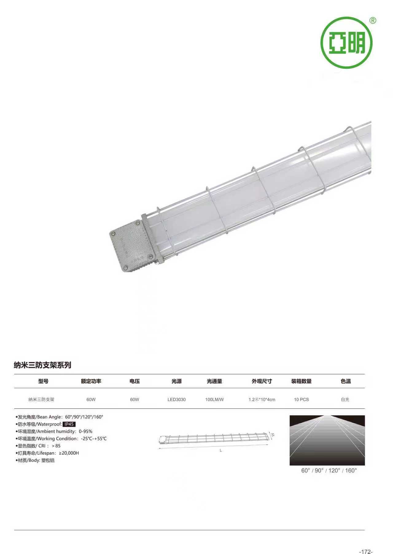 亚明 纳米三防支架 一体式防爆灯 1.2米 白光 60W 1.2米*10*4cm(单位:个)