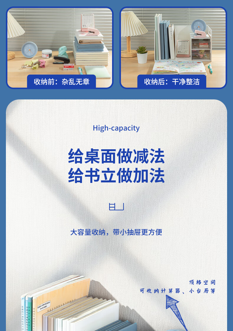 得力(deli)PK110 多功能桌面书立架书收纳桌上文件收纳盒抽屉式置物架书挡 白色 单个