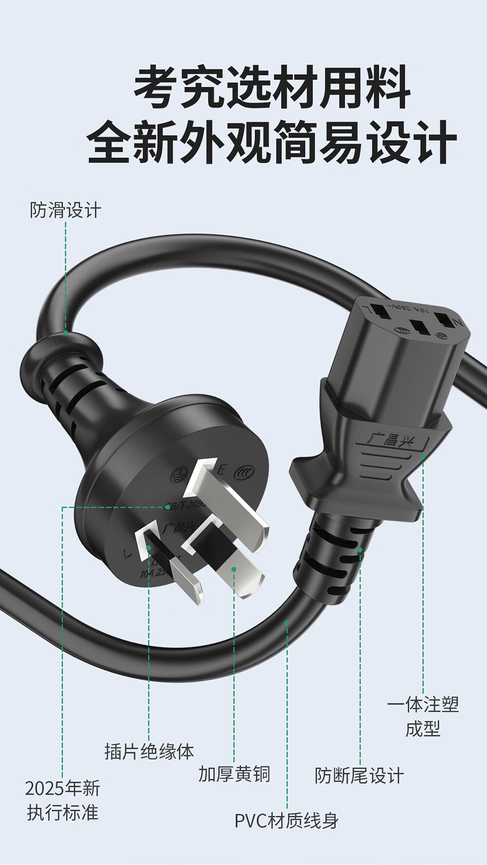 广昌兴 3*1.5平方 电源线 10a直头三插台式服务器主机PDU连接线 3米